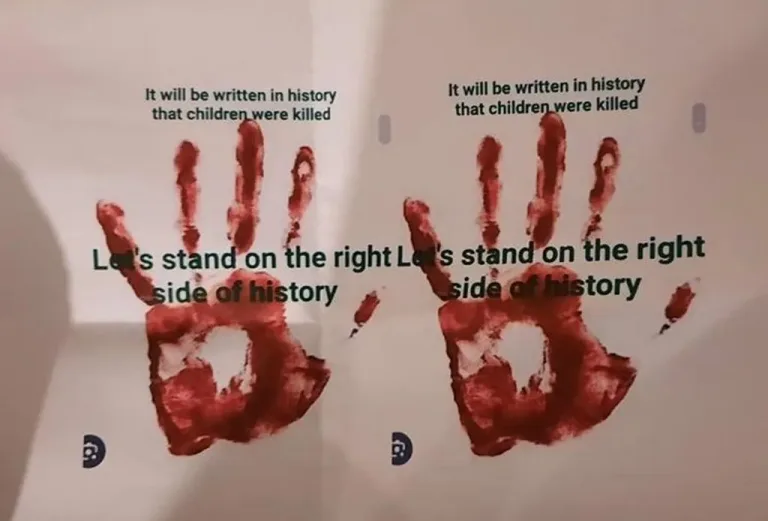 Intaa waxaa dheer, Stern ayaa la sheegay inuu diyaariyay xayaysiisyo lagu qoray meelaha dadweynaha oo muujinaya gacmo dhiig leh oo leh qoraal Ingiriis ah: "Taariikhda waxaa lagu qori doonaa in carruur la dilay, aan ku istaagno dhinaca saxda ah ee taariikhda." Wuxuu soo xushay laba Israa'iili oo kale si ay u fuliyaan qaar ka mid ah hawlaha, sida dhaqaajinta lacagta iyo gudbinta xirmooyinka, isagoo ku helay lacag lagu bixiyo lacagaha dijitaalka ah.